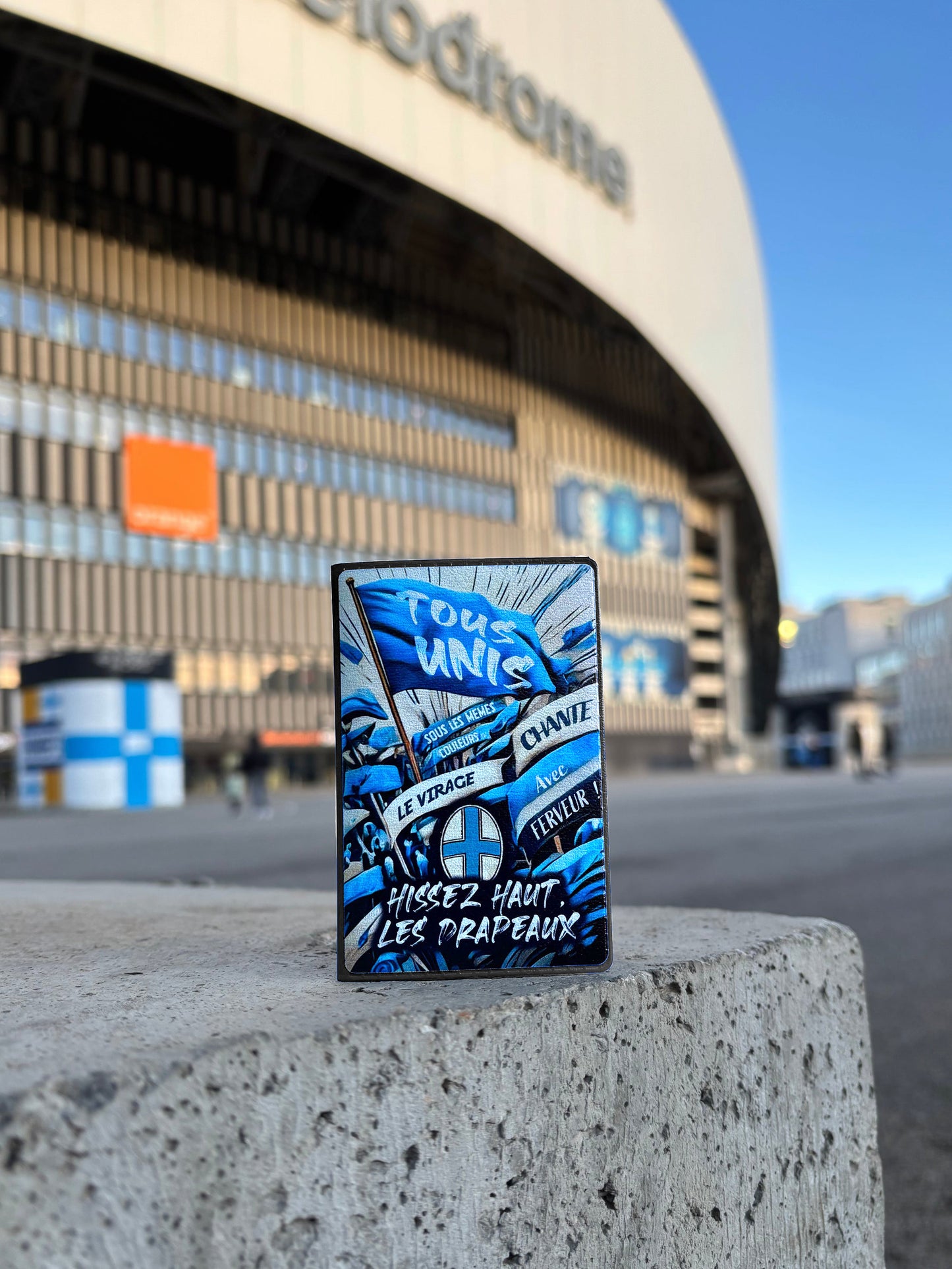 Ce coloris est né d'une erreur d'impression et est devenu en peu de temps l'un des modèles les plus vendus ! Affichez fièrement vos couleurs avec notre porte-cartes "Hissez Haut les Drapeaux", spécialement conçu pour les supporters de l’Olympique de Marseille. Inspiré du célèbre chant des fans de l’OM, ce porte-cartes incarne l’esprit et la passion du stade Vélodrome.