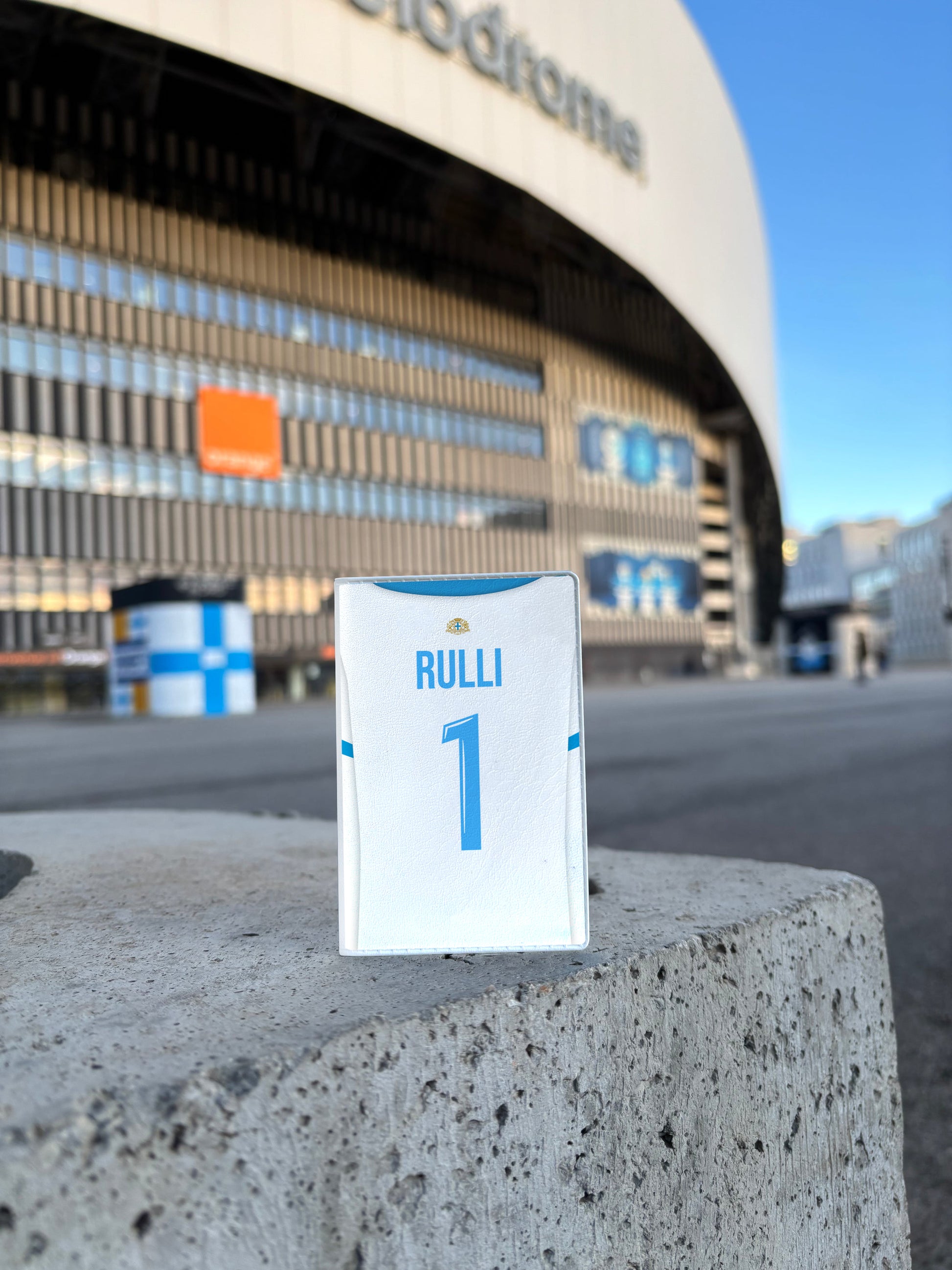 Le porte-cartes “RULLI 1” reprend fidèlement le visuel du maillot de l’OM floqué au nom du gardien. Avec son n°1légendaire et ses lettres bleues, il incarne la sérénité, les arrêts réflexes et le dernier rempart marseillais. Le col bleu, les manches, le flocage officiel… tout y est, comme si vous teniez le maillot entre vos mains.